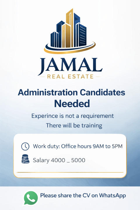 Administration candidates needed experience is not a requirement there will be training company location Dubai Al Nahda 1 work duty office hours 9AM to 5PM Salary 4000 - 5000 please share the CV
