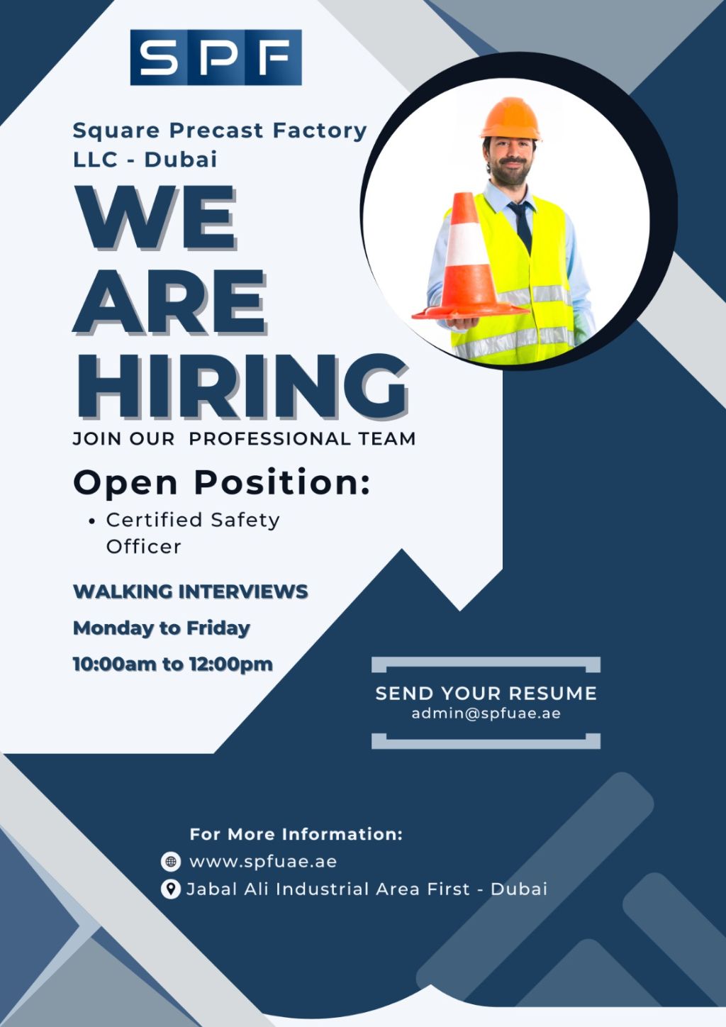 Square Precast Factory LLC is hiring a Certified Safety Officer for a precast concrete factory. Candidate must hold an approved safety certificate with UAE experience and knowledge of safety regulations, inspections, and reporting. Industrial or factory experience is preferred. Location Dubai - Jebel Ali Industrial Area 1 Send CV by email only