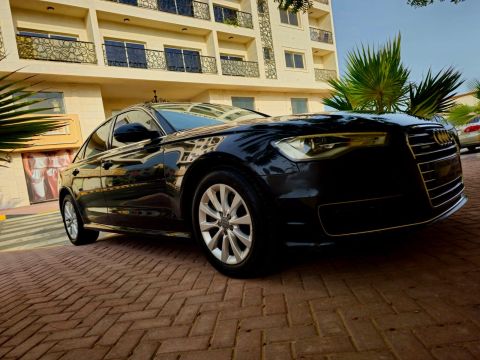 Audi A6 2016 Quattro (GCC specifications) with 131,000 km mileage. The engine is a V6 3.0L TFSI. Transmission is automatic Quattro all-wheel drive. Features include sunroof, leather seats, navigation system, cruise control, parking sensors, and alloy wheels. The car is in good condition and well-maintained with GCC specifications. Price: 38,000 AED.