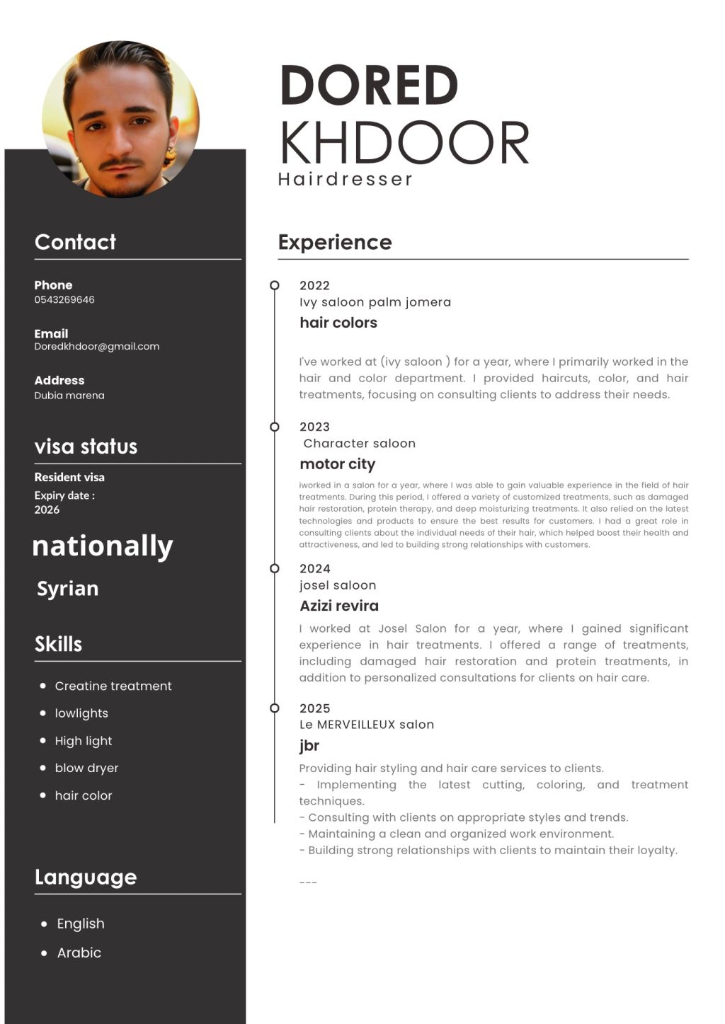 كوافير نسائي شاب ابحث عن فرصة عمل في صالون يحتاج موظفين بروفيشنال