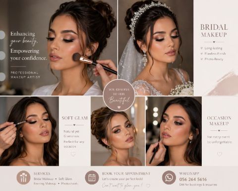 مرحبا معك ميكب آرتست بخبرة أكثر من 4 سنوات في مجال التجميل أقدم لك خدمات مكياج احترافية باستخدام منتجات High أصلية 100%، مع اهتمام بأدق التفاصيل للحصول على اطلالة أنيقة وثابتة تدوم لساعات وتناسب التصوير والاضاءة خدماتي تشمل مكياج مناسبات رموش كاملة أو فردية حسب طلب الزبونة + تحضير للبشرة + مكياج جسم + تحديد وتكبير شفايف + كونتور مناسب ومحدد لكل شكل وجه + تصوير سريع احترافي أحدث