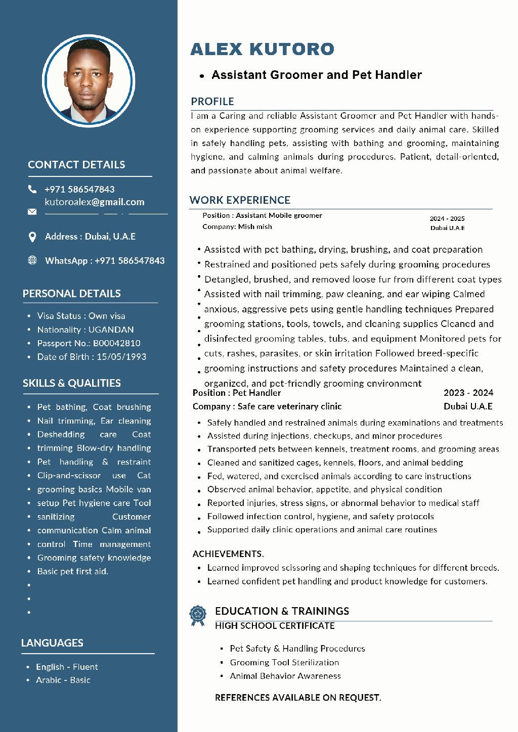 I am applying for the above position mentioned with your company as it is a role I can perform exceptionally well to a high standard. If I succeed in my application, I assure you that I will perform all my duties to an exemplary standard level to quickly become a team member who contributes positively to the organizations'objectives. Yours faithfully, Kutoro Alex