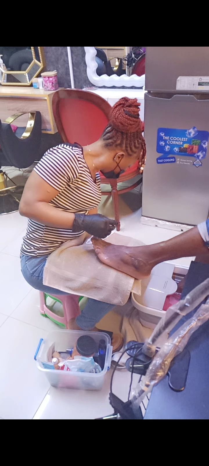 My name is Alma, I am a hairdresser (all types of braids and hairstyles) I also do pedicures, manicures, and eyelash extensions. I used to work in a local salon in Dera Market for 8 months, but during the crisis she traveled