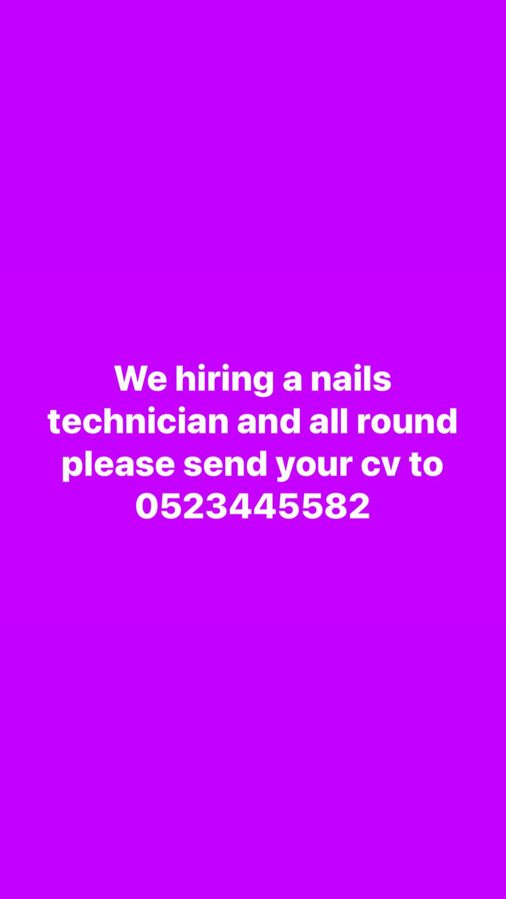Urgently we hiring a nails technician and all round for beauty salon in Dubai TECOM pleas send youd CV to