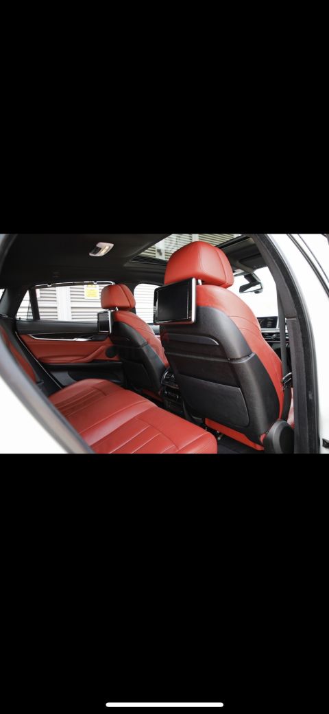 BMW X6 2015 model in excellent condition, GCC specifications. Full options with rear screens. There are two pieces. Leather interior in beige color, exterior in white color.