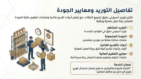 مطلوب شريك ممول لمشروع خدمات الضيافة تتوفر فرصة استثمارية مميزة للدخول كشريك ممول في مشروع خدمات الضيافة والتوريد، وهو مشروع واعد يستهدف الشركات، المكاتب، العيادات الطبية، والجهات التي تحتاج الى توريد مستمر ومنظم لمستلزمات الضيافة. فكرة المشروع توريد منتجات الضيافة بشكل دوري ومنتظم، مثل القهوة، الشاي، المياه، التمور، الشوكولاته، الاكواب، المناديل، والاحتياجات المرتبطة بخدمة الضيافة داخل بيئات العمل