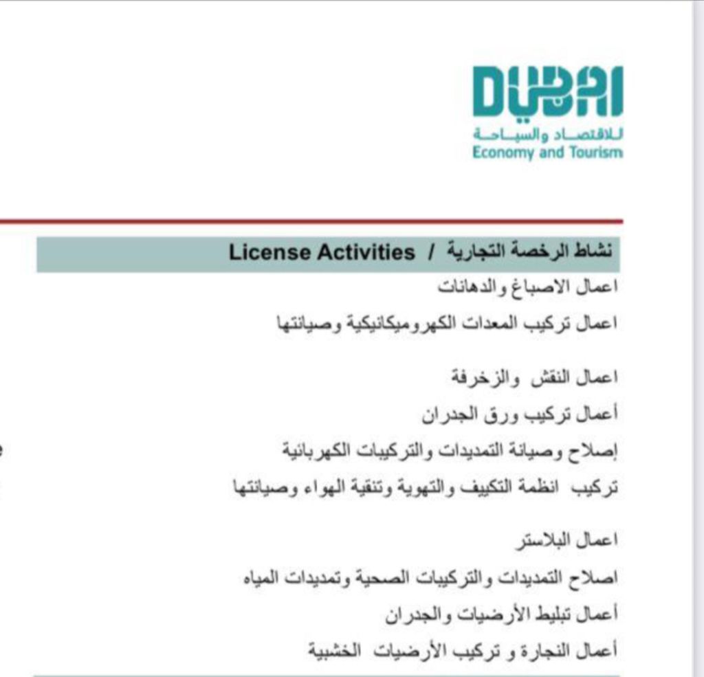 للبيع بغرض السفر شركة أعمال فنيه اصدار دبي وتعمل في كل الامارات بها عدد 10 أنشطة مقاولات، لديها سمعة طيبة وعقود أعمال جاريه وعمالة نظامية وسيارة باص وسائق وسقالات وخشب ودخلها السنوي يتراوح من مليون و200 ألف الى مليون و500 ألف مع أرباح تتراوح من 15% الى 20% والسعر 90 ألف دولار (تفاوض بسيط) ومن دون عمولة من المالك مباشرة
