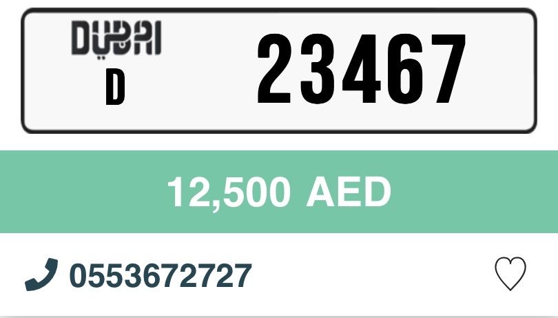 أرقام دبي للبيع لداعي السفر D 23467 للاتصال
