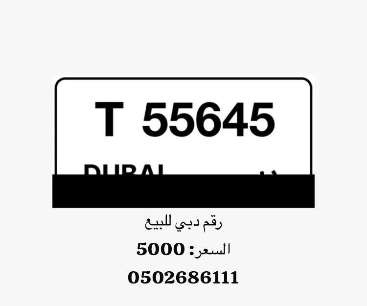 لوحة مركبة للبيع الرقم 55645 دبي تي. السعر النهائي 5000 درهم