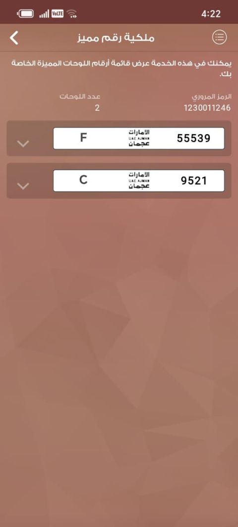 For sale number plate Ajman 55539 F 6000. 9521 C 7500