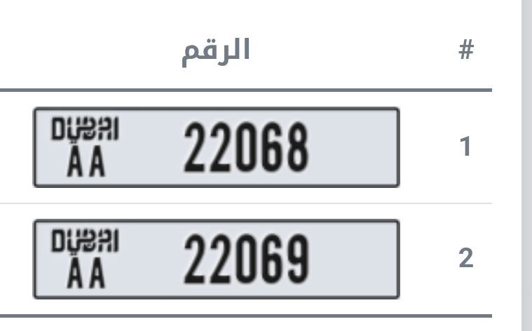 لوحات طقم متسلسل للبيع دبي تنفع للأخوة والأصدقاء أو لمالك أكثر من سيارة AA 22068 AA 22069