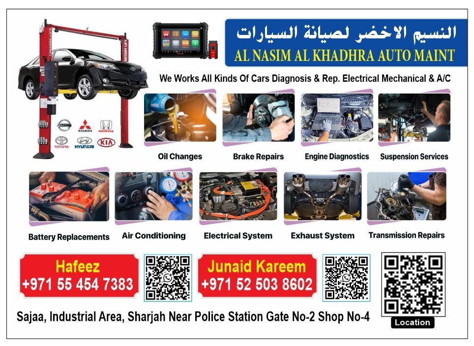 هل تحتاج سيارتك الى عناية متخصصة لا داعي للتنقل بين ورش الصيانة مركزنا المتكامل للسيارات في الشارقة (منطقة سجا) يلبي جميع احتياجات سيارتك اصلاح الخدوش والطلاء أعمال كهربائية إصلاحات ميكانيكية قطع غيار السيارات الراحة تلتقي بالجودة. عد الى الطريق أسرع مع خدمات صيانة موثوقة. الموقع الشارقة، منطقة سجا اتصل / واتساب اليوم