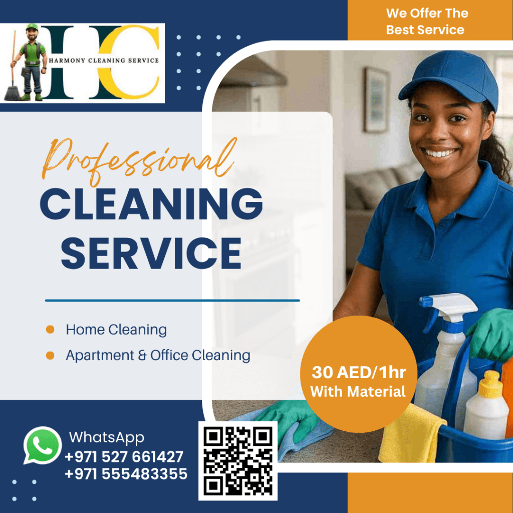 Cleaning Service in Dubai - Affordable, Reliable & Professional Tired of dust and mess Let our expert cleaners bring back the shine to your home or office We provide top - quality cleaning services across Dubai, tailored to your needs and schedule. Our Services Include Home & Apartment Cleaning Office & Commercial Cleaning Deep Cleaning & Move - In/ Move - Out Cleaning Kitchen & Bathroom Sanitization