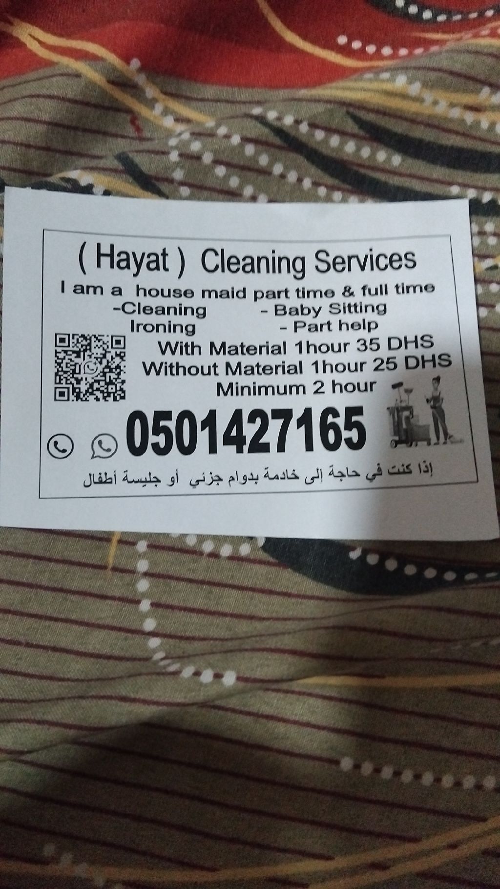 If you need all kinds of cleaning services available with materials 35 drham and without materials 25 drham