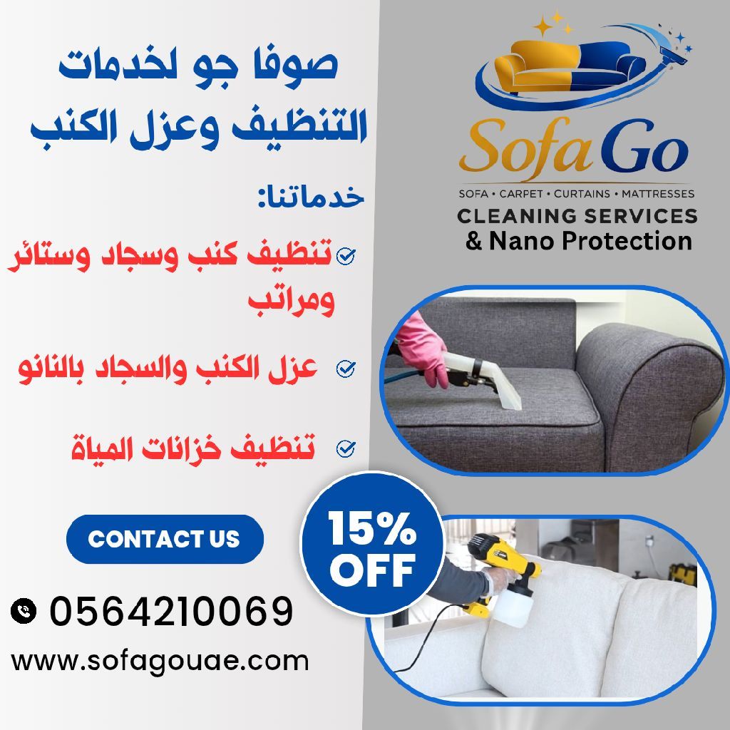 Get 25% OFF with Sofa Go Deep clean your sofas, carpets, curtains, and mattresses with the best in the business. Nano - Shield Technology Waterproof and stain - proof protection. Eco - Friendly Safe materials that protect your fabric. Total Sanitization Kills bacteria and germs for a like - new finish. Available 24/ 7 with a team of experts
