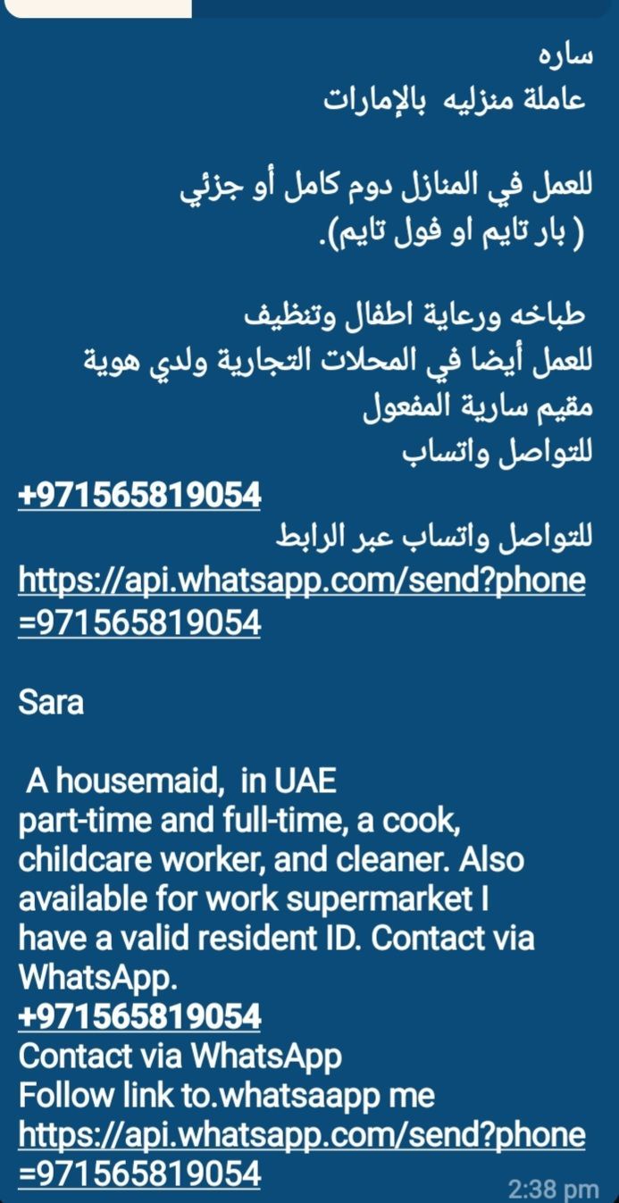 My name sara from Ethiopia I am looking job full time and part time experience cleaning cooking babysitter and ironing if u interested please contact me