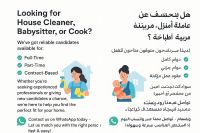 Looking for a House Cleaner, Babysitter, or Cook We’ ve got reliable candidates for full time part time Contract - Based Whether you're seeking experienced professionals or giving new candidates a chance, we're here to help you find the perfect fit for your home. Contact us on WhatsApp Let us match you with the right person fast and easy