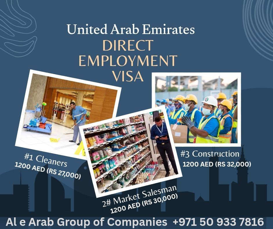 Urgent Required staff for UAE Dubai Direct Employment Visa, Shoping Mall Cleaners & Market Salesman, location Al Quoz Industrial Area 2