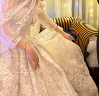 فستان زفاف فاخر ونافش تصميم أوروبي فيكتوري نفس الأميرات، سهل الارتداء، ويتضمن شاحط طويل جدا مطرز ومشكوك، مع رقبة على شكل حرف V وأكمام تمتد لما بعد الكوع بتصميم مشابه لنقشة الطرحة. الفستان يلبس مقاسات S M والسعر 3500 درهم قابل للتفاوض. للتواصل عبر واتساب أو لتحديد موعد لقياس الفستان في دبي. رقم الاتصال