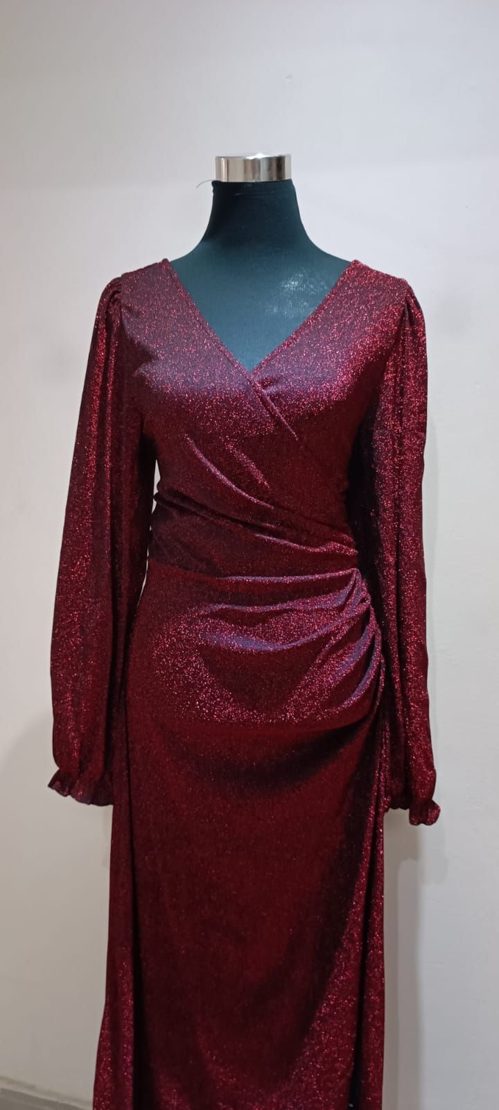 فستان استريج جديد مناسب للحفلات اللون مارواني بلمعة المقاس لارج السعر 100 درهم للتواصل