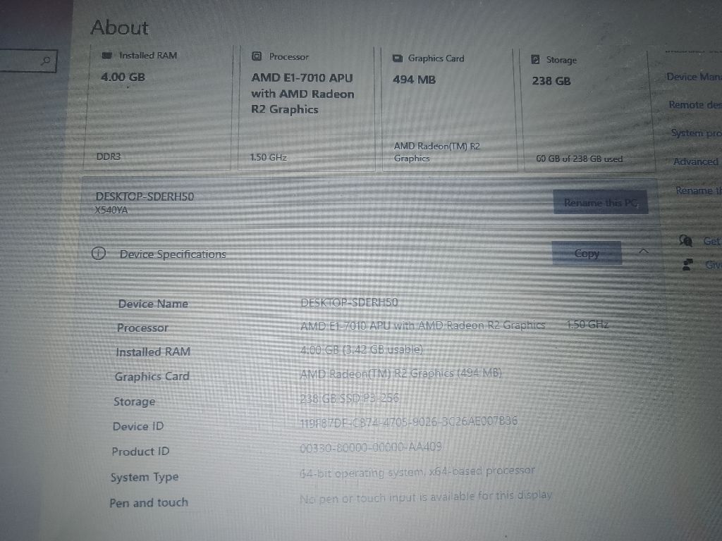 AMD Radeon R 2 Graphics Graphic card 494 MB 238 GB storage SSD 300 Dirham