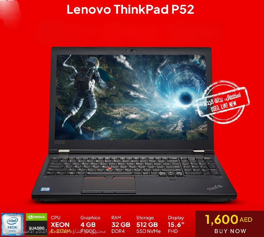 للبيع لابتوب Lenovo ThinkPad P52 نظيف جدا (بحالة الجديد) المواصفات تجدها كاملة بالصورة أو تواصل معي رسائل لتفاصيل أكثر