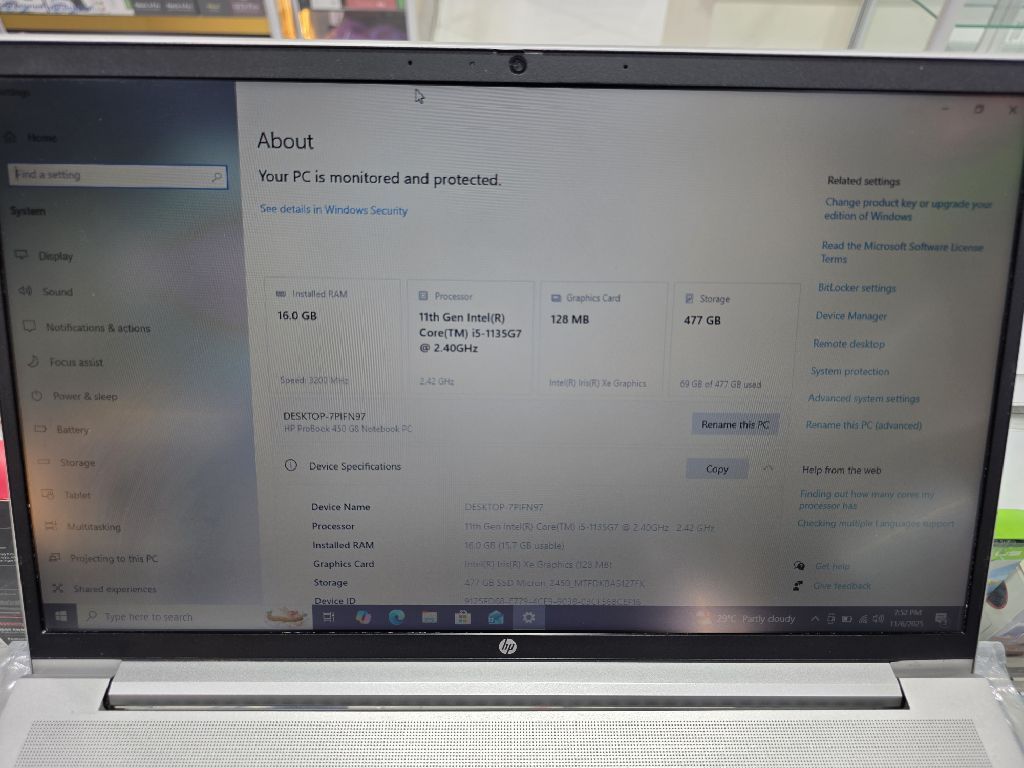 HP Probook 450 G8 Laptop Core i5 11th Generation 16GB Ram 512 GB SSD 15.6 "Display size Original charger Price AED1050