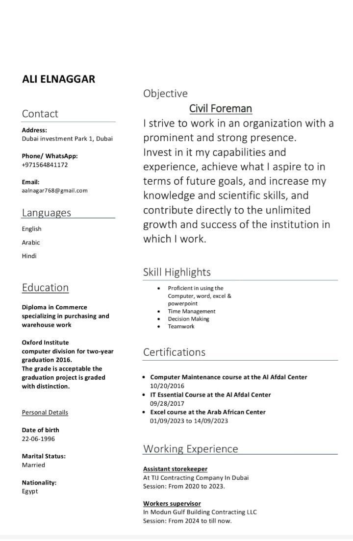 ابحث عن عمل فورمان موقع تشطيبات انشاء خبرة في الدولة 6 سنوات أجيد الله العربية الانجليزية الهنديه