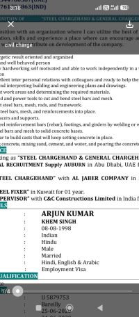 Civil chargehand and Steel fixer chargehand