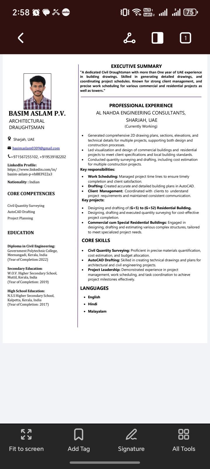 I am an Architectural draftsman with 2 years of UAE experience in AutoCAD software. Currently wotking at Sharjah