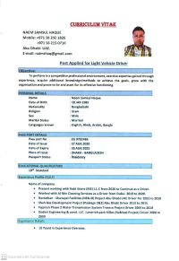 My name is Naeem samsul haque. I am form Bangladesh, I have UAE manual drive license and I have 13 years experience in UAE driving
