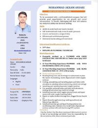 I am Md Akram Ansari. I am from India. I have a cancelled visa. I know all the work of a plumber. I have studied and graduated in plumbing. I have 6 years of experience in India and 1 year of experience in Dubai. I am looking for a good job. I am honest and hardworking