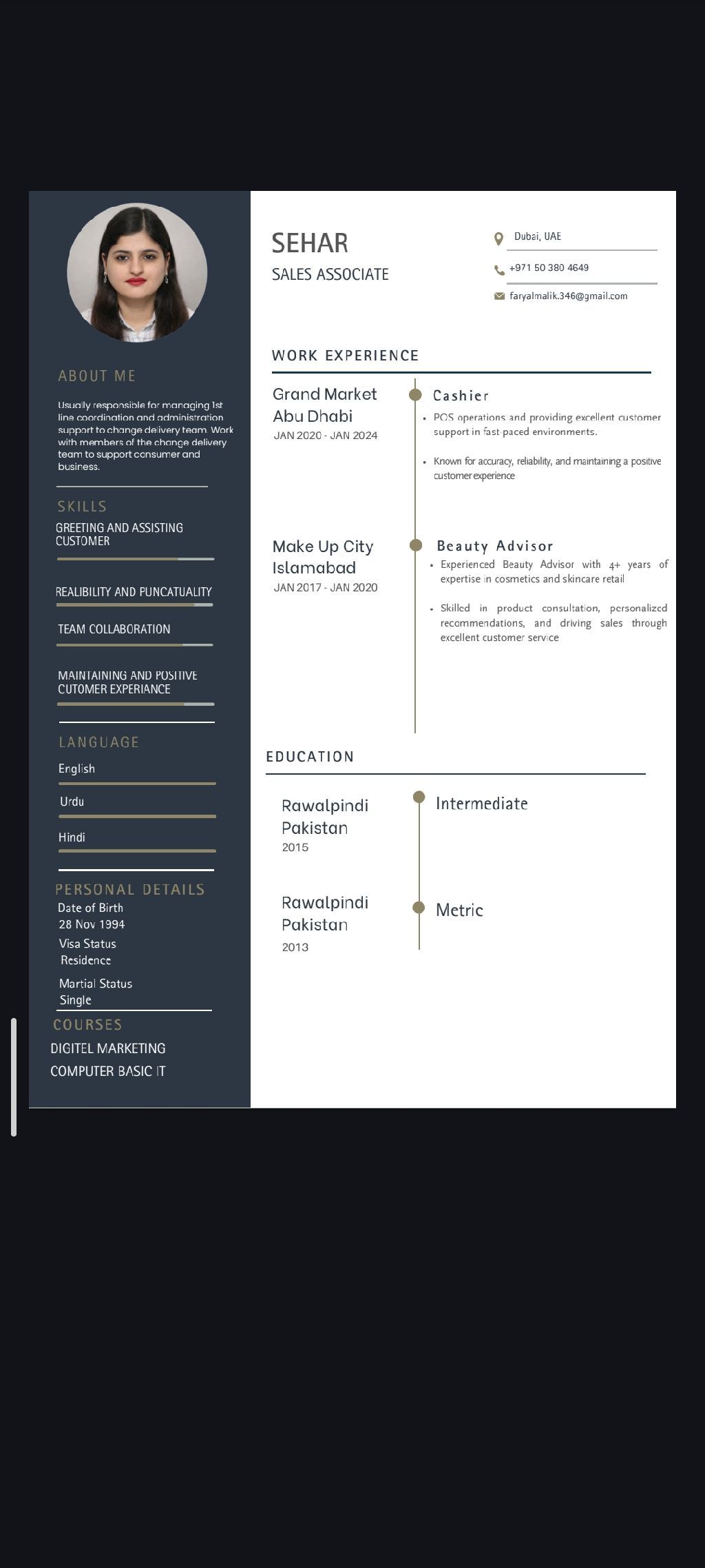 أمينة صندوق وبائعة ذات خبرة تزيد عن 4 سنوات، جاهزة للانضمام فورا للعمل في مجال البيع بالتجزئة وخدمة العملاء. تمتلك خبرة قوية في عمليات الكاشير واستخدام أنظمة نقاط البيع (POS) وتقديم خدمة عملاء ممتازة في بيئات عمل سريعة. لديها خلفية قوية في مبيعات مستحضرات التجميل والعناية بالبشرة، مع مهارة في تقديم استشارات المنتجات ومساعدة العملاء في اختيار الأنسب لهم