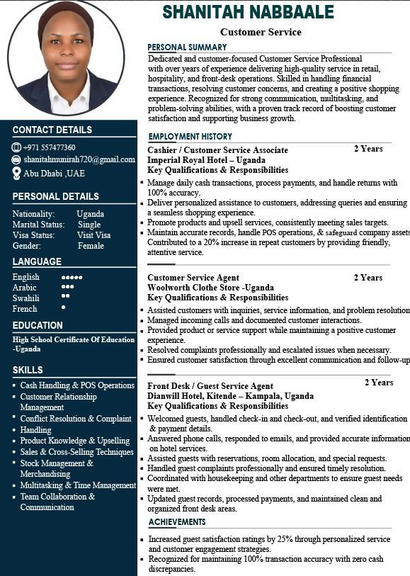 I am a passionate and detail - oriented in sales, customer services, I am ready to start immediately thanks
