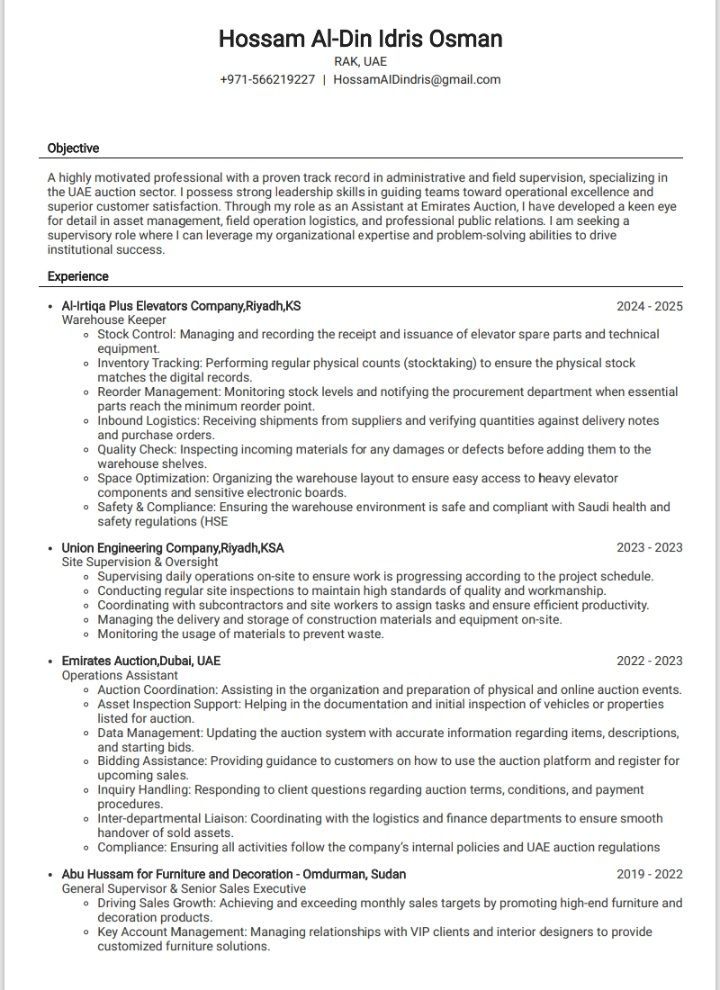 أنا حسام الدين إدريس سوداني الجنسية لديه الخبرة في العديد من المجالات وشهادات حيث أني عملت بأكثر من دولة عربية في شتى المجالات