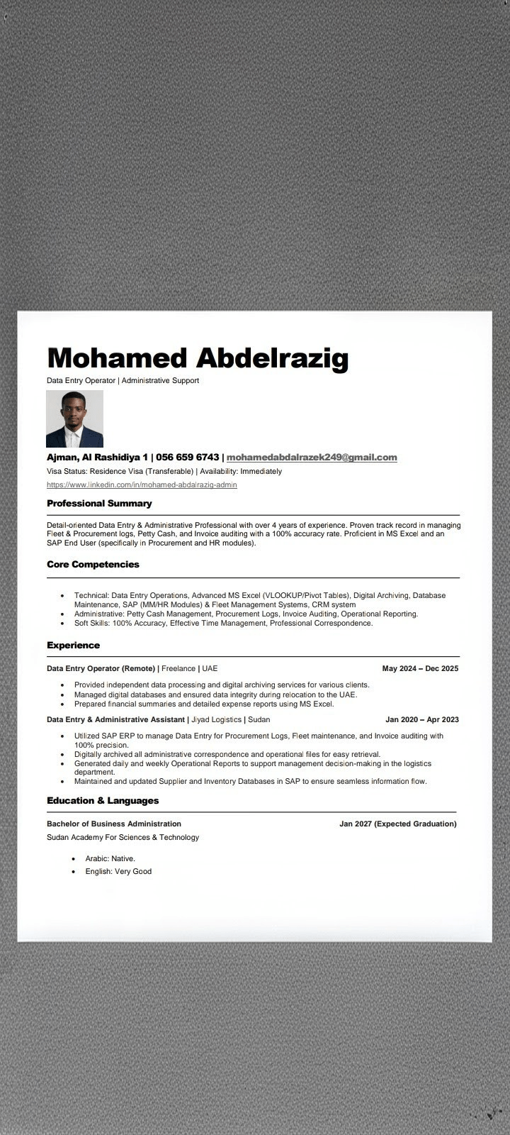 Data Entry Operator with over 4 years of experience, looking for a good work opportunity Arabic/ English speaker