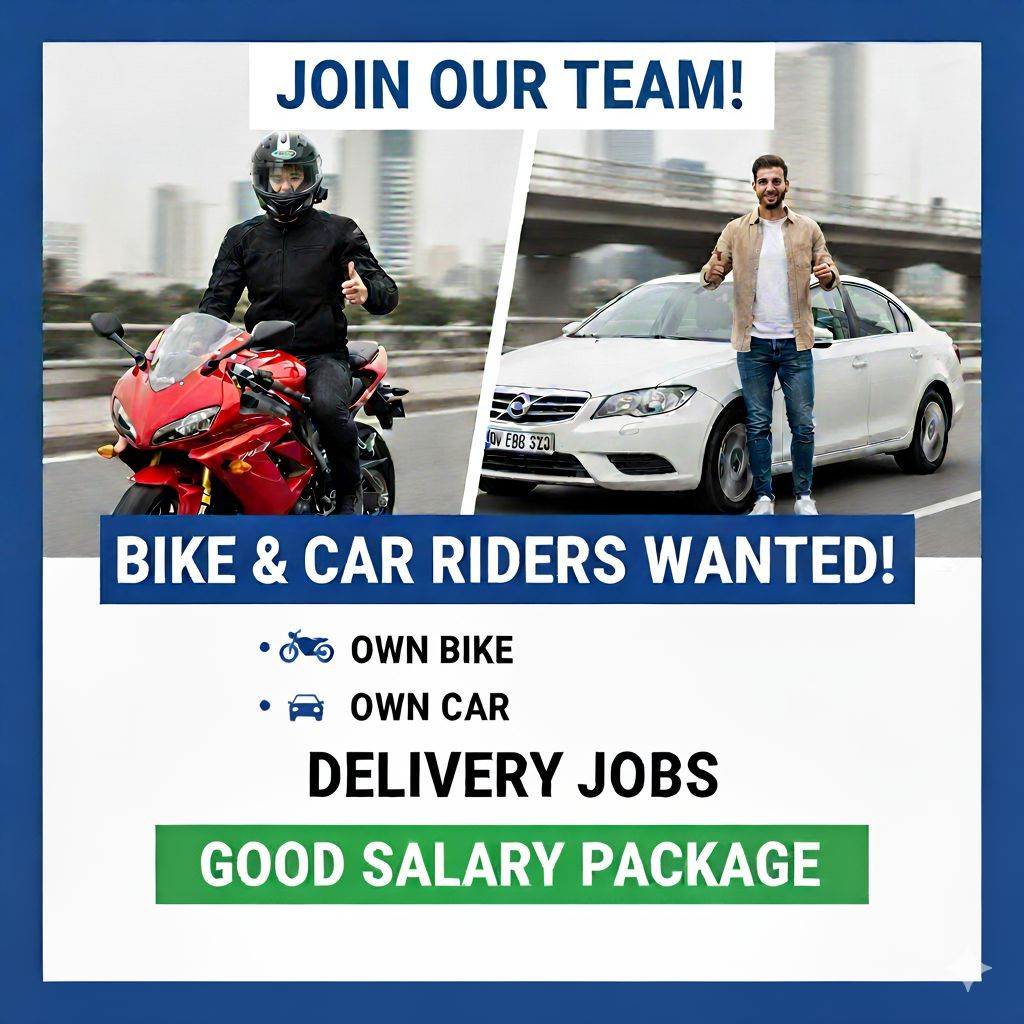 Urgent Hiring - Car Drivers & Bike Riders in Dubai We are hiring Delivery Drivers and Riders with own car or own bike for delivery work in Dubai. Requirements Must have own car or own bike Valid UAE driving license Ready to work full time delivery job Benefits Good salary package Petrol provided by company Long - term work opportunity Friendly and professional environment