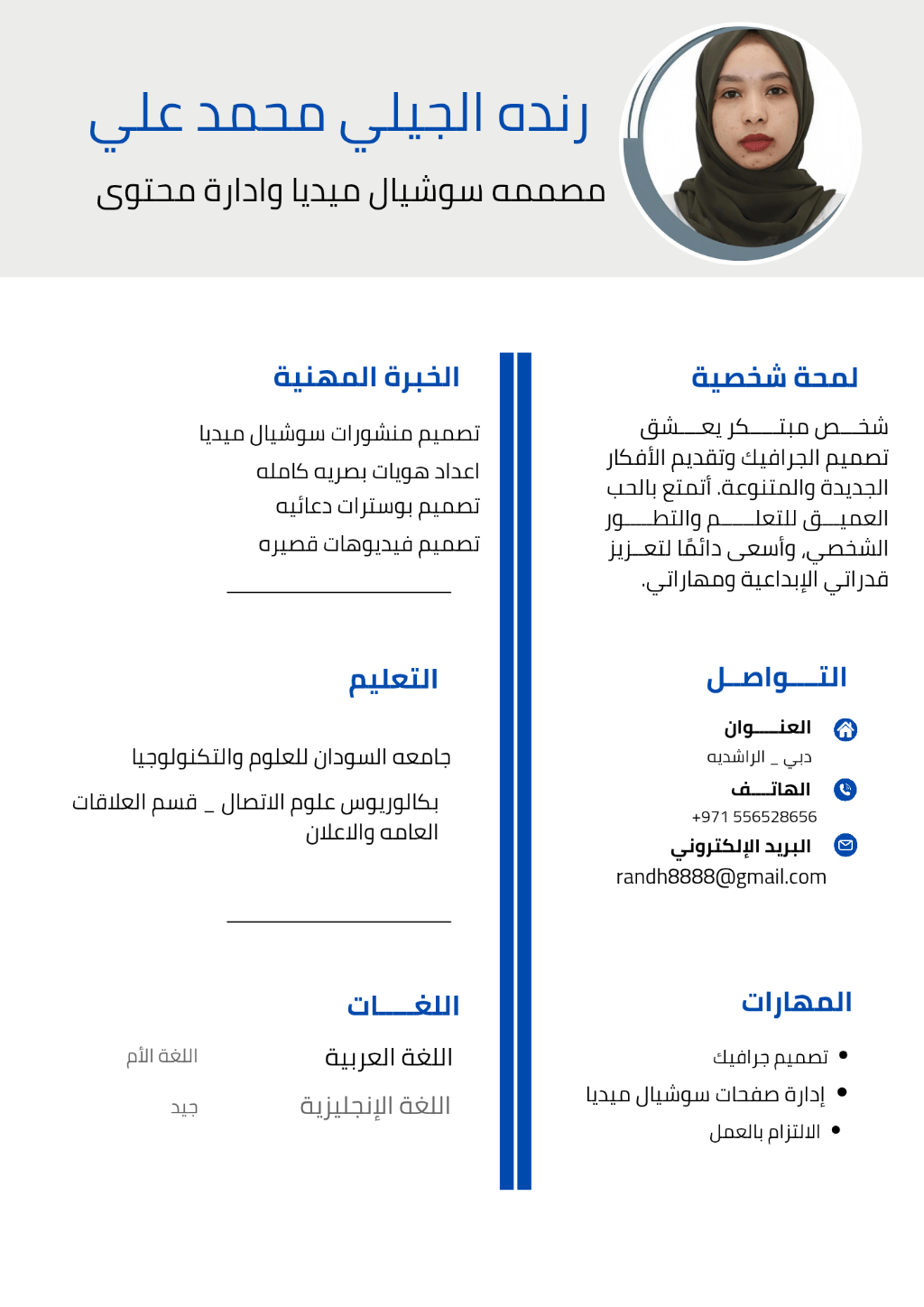 رنده الجيلي ابحث عن وظيفة عمل عن بعد في المجال الاعلاني'تصميم السوشيال ميديا وعمل فيديوهات اعلانيه وادارة محتوى لصفحات التواصل الاجتماعي
