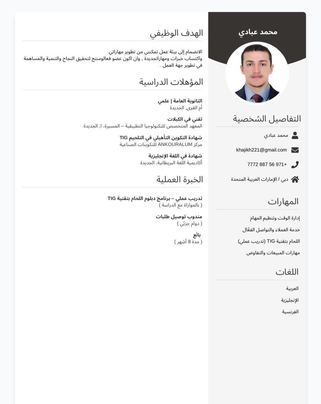 Hello I am Mohamed Abadi a Moroccan national looking for an immediate job in Sales Waiter Security Guard or Welding I have previous experience in welding and sales and hold a diploma in welding Committed and ready to start immediately seeking an opportunity to prove my abilities