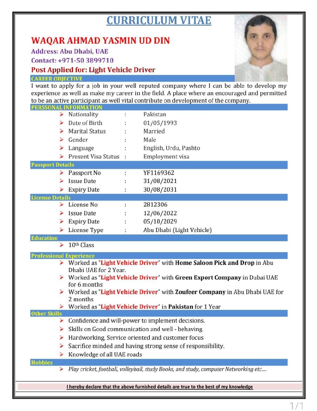 My name WAQAR Ahmad I have light vehicle license I am looking for a job I have own visa if anyone interested please I am available