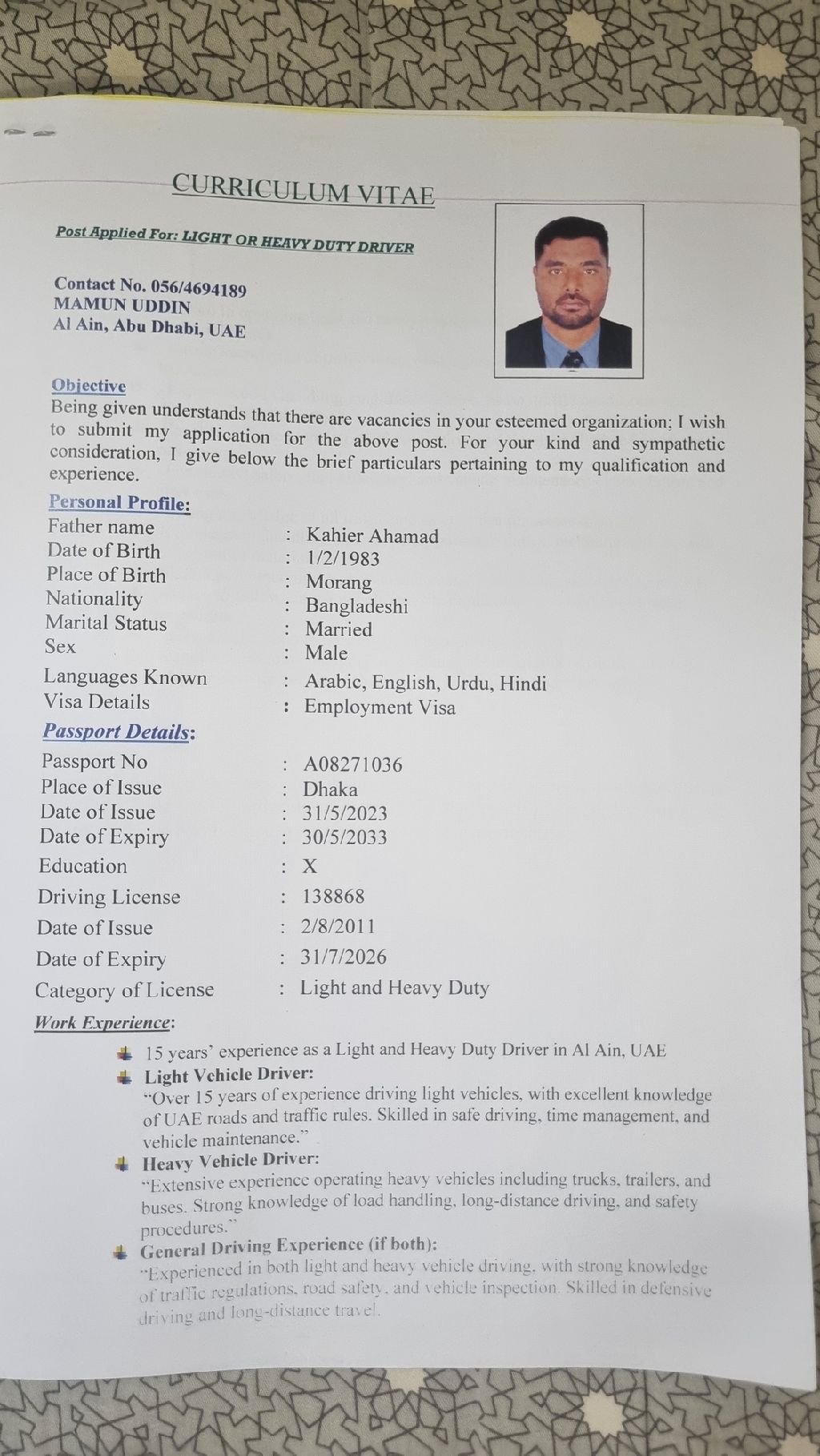 يطلب عمل سائق في الإمارات