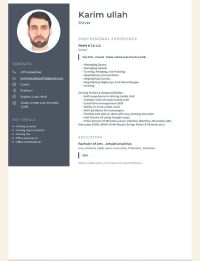 My name is Karim Ullah, I have light vehicle driver license, my two years experience at Abela and co catering in Dubai
