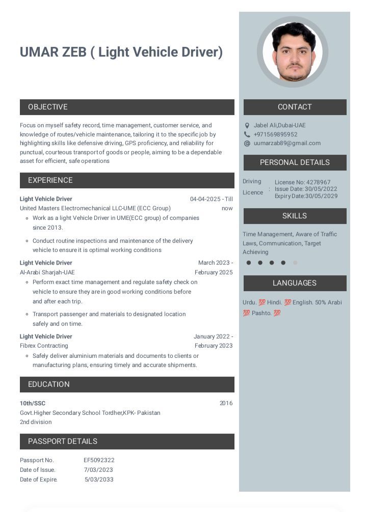 I am from Pakistan and looking for driver job I have experience 4 years in UAE kindly please check my CV