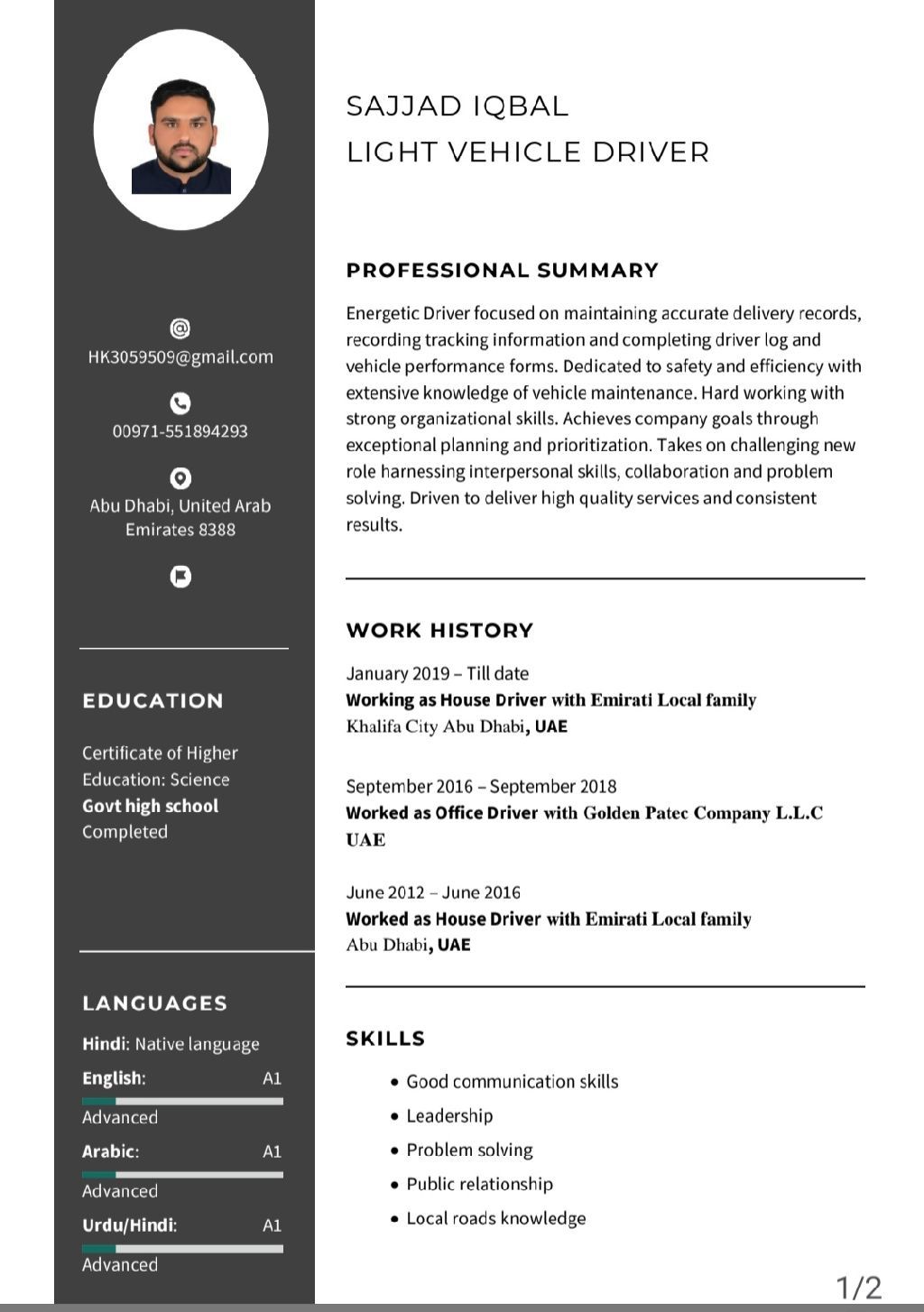 أنا سائق محترف لمركبات خفيفة، ابحث عن وظيفة سائق. لدي خبرة 12 عاما في هذا المجال في الامارات العربية المتحدة. لدي تأشيرة عمل سارية المفعول لمدة 1.6 سنة، مع شهادة عدم ممانعة. اذا كان لديكم أي وظائف شاغرة في مجال تخصصي، فأرجو ابلاغي، فأنا مستعد للانضمام فورا. شكرا لكم