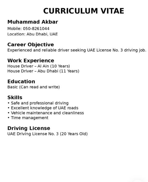 سيرة ذاتية مختصرة سائق خاص سائق سيارات فاخرة سائق خاص سائق VIP جاهز للعمل فورا اسمي شاه فهد، ولدي خبرة في قيادة السيارات الفاخرة وتقديم خدمة راقية وآمنة لأصحاب المنازل، العائلات، والاداريين الخبرات قيادة سيارات فاخرة مرسيدس، بي ام دبليو، لكزس، رنج روفر، اودي سائق خاص للعائلات والأفراد توصيلات المطار (استقبال وتسليم) رحلات طويلة داخل الامارات المحافظة على نظافة السيارة وفحصها