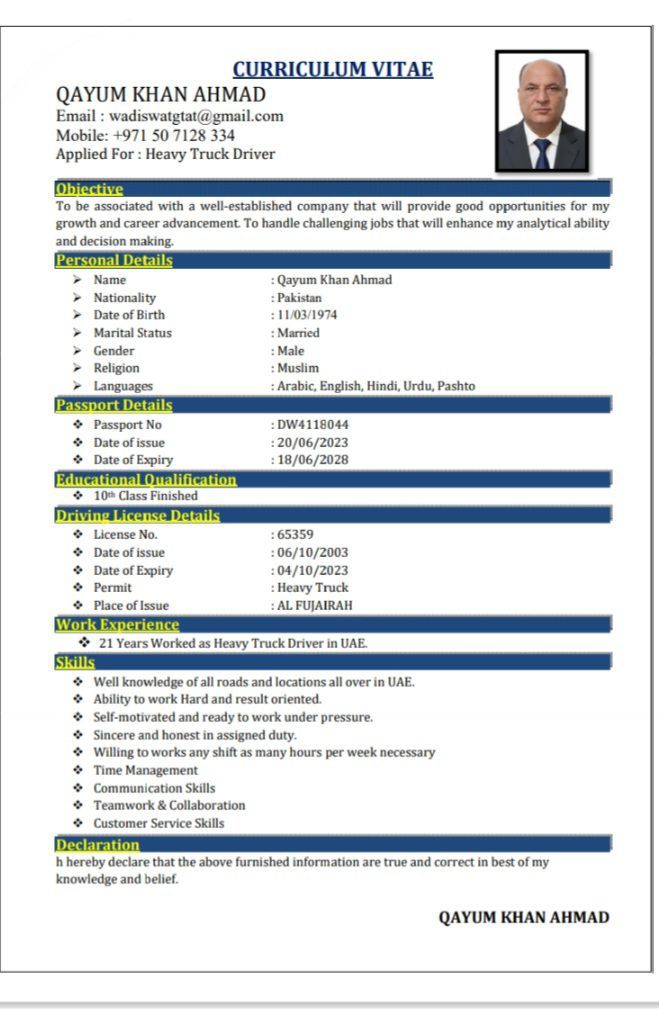 Dear sir I am a driver light and heavy duty driver I need a driving job plz contact me My number I am here in the UAE in visit vaisa plz contact me