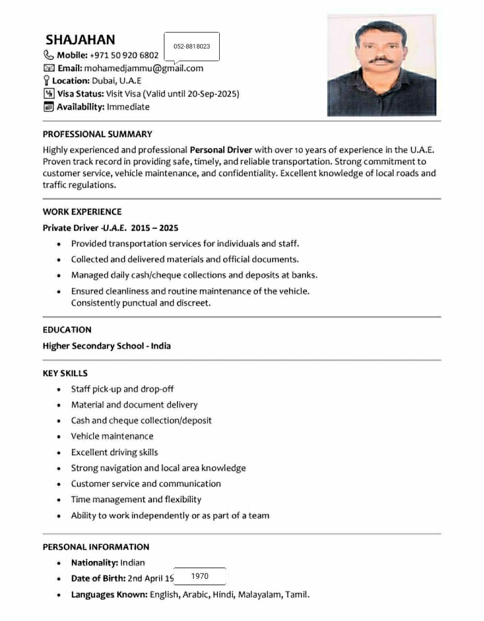 I am Shajahan Indian luking Driver job15 + years'UAE Experience in Dubai & Sharjah pls Help thanks