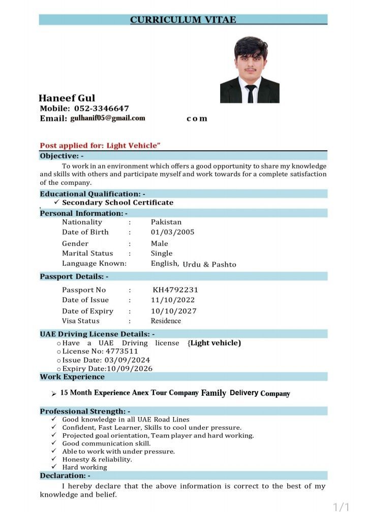 My name is Hanif Gul I have my own visa 2 year time I need drive job