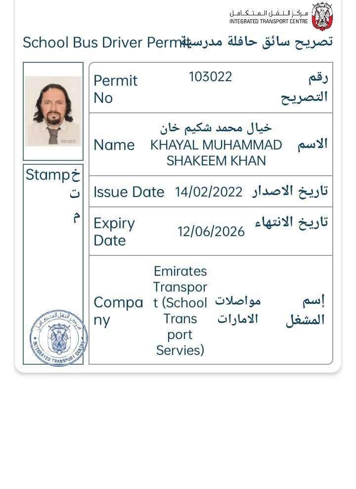 اسم خيال محمد باكستان ابحث عن عمل لدي رحصه قيادة حفيفة أو ثقيلة خبرة. باص الحفلة 15 سنوات مقيم داخل الامارات أبوظبي مصفح أعرف كل مكان أبوظبي العين دبي أعرف طريقة خرائط جوجل الحمد لله أعرف كل مكان أبوظبي العين دبي يتكلم عربي أردو انجليزي أي حد أريد دريوال تصل عليه مشكورين