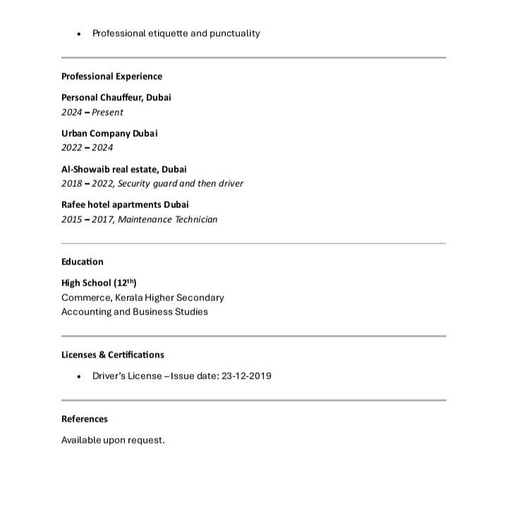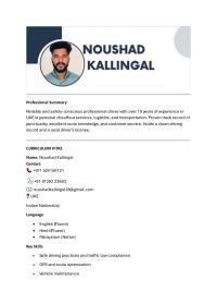 My name is Noushad. My home is Kerala, India. I am 32 years old. I am looking for a driver job in Dubai. I have my own visa. I have 7 years of experience as a driver in Dubai